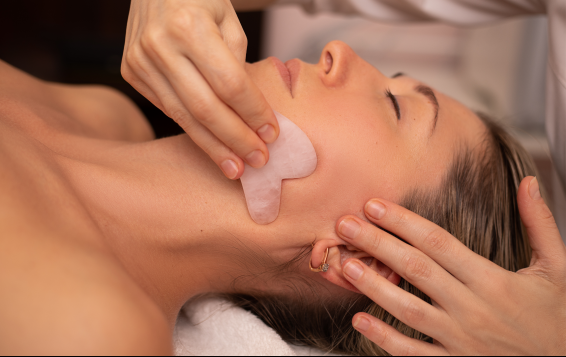 The Zone Face Lift treatment uses specialist tools to speed up the results for you. Tools such as Gua sha, acupressure roller and crystal mushrooms are used to stimulate anti-aging and healing. It encourages decongestion of the skin, blood flow and circulation. Gentle scraping movements encourage lymph drainage which detoxify, helping to clear sinus congestion, prevent acne, dark skin pigmentation, puffiness and dark circles under the eyes.